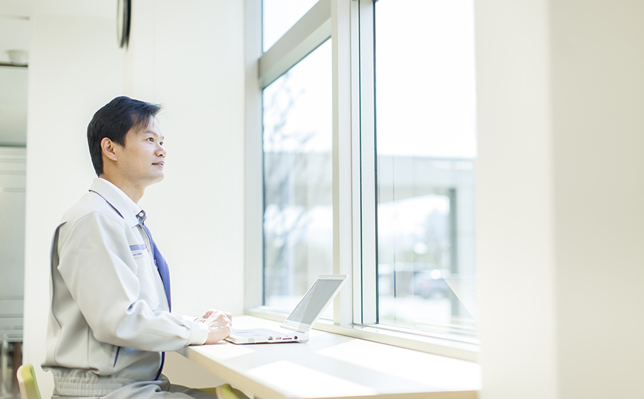 - 自他ともに認めるマジメな性格は天性のもの。この仕事に就いてから、常に相手の立場に立ってコミュニケーションすることを学んだそう。趣味は旅行。サンメディカルのある滋賀からすぐに足を伸ばせる、京都や奈良の歴史ある風情が大好き。