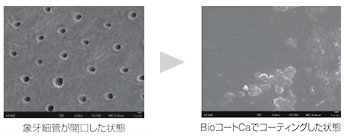 硬くて丈夫な被膜が象牙質をしっかりコーティングし、冷水やエアーによる刺激、清掃時の擦過痛などさまざまな痛みの発生を防止します。