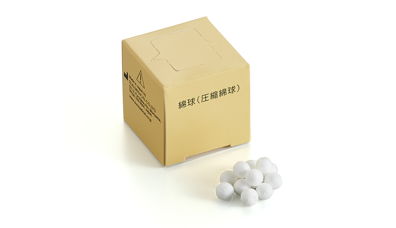 液材を吸収しても崩れにくい圧縮タイプの綿球です。
